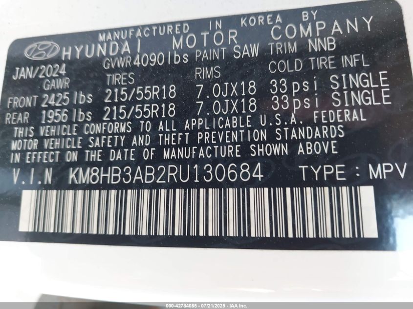 2024 HYUNDAI KONA | KM8HB3AB2RU130684