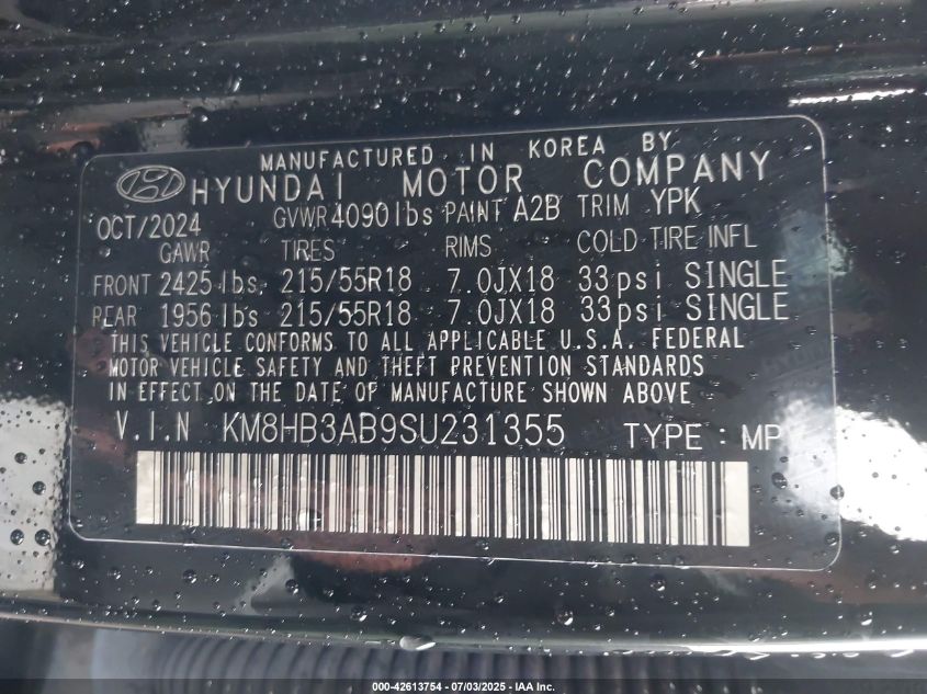 2025 HYUNDAI KONA | KM8HB3AB9SU231355