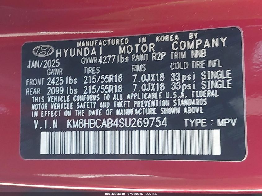 2025 HYUNDAI KONA | KM8HBCAB4SU269754