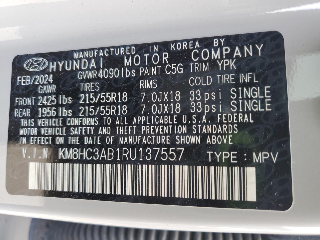 2024 HYUNDAI KONA | KM8HC3AB1RU137557