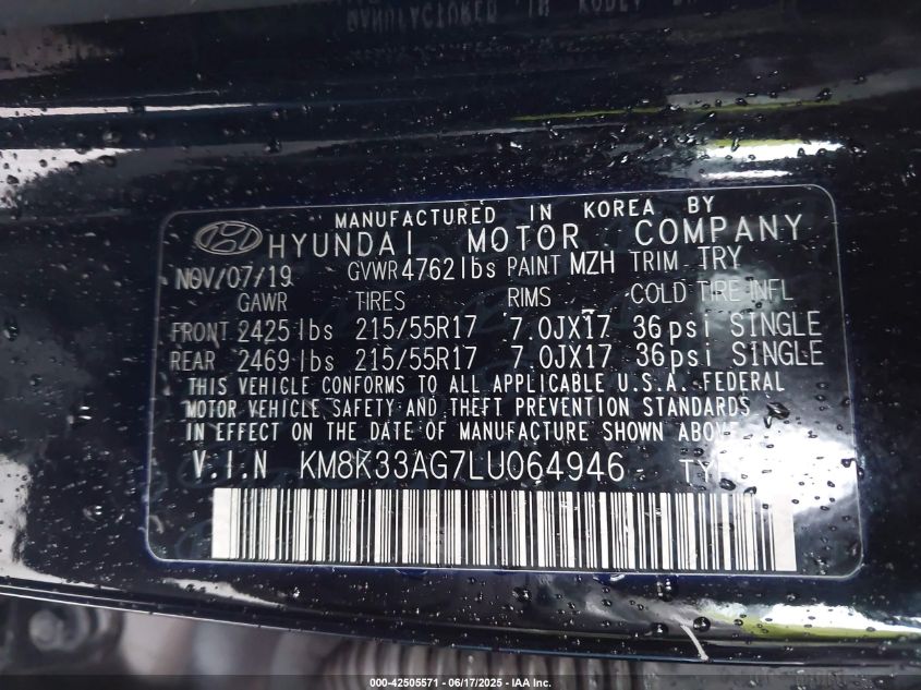 2020 HYUNDAI KONA | KM8K33AG7LU064946