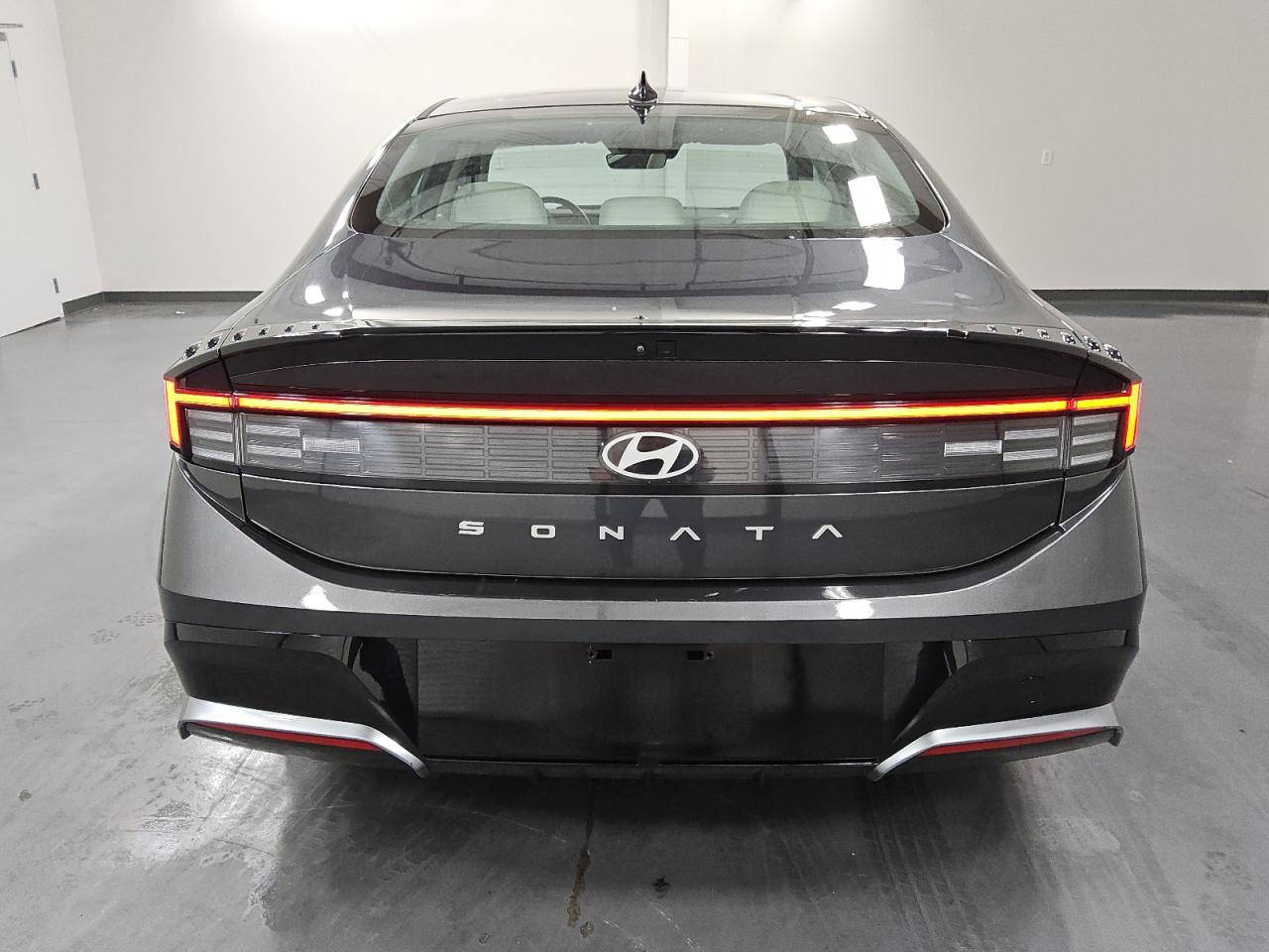 The Hyundai Sonata is a four-door fastback-style sedan, adopting a bold and sweeping silhouette uncommon in its class. With a low hood, raked roofline, and a short rear deck, the profile mimics the proportions of premium four-door coupes. The LED daytime running lights are seamlessly integrated into the chrome hood trim, creating a futuristic light signature. A long wheelbase and wide stance further ground the car visually while improving interior packaging. The rear treatment is dominated by a continuous LED light bar and sculpted bumper that evoke upscale design cues rarely seen at this price point.