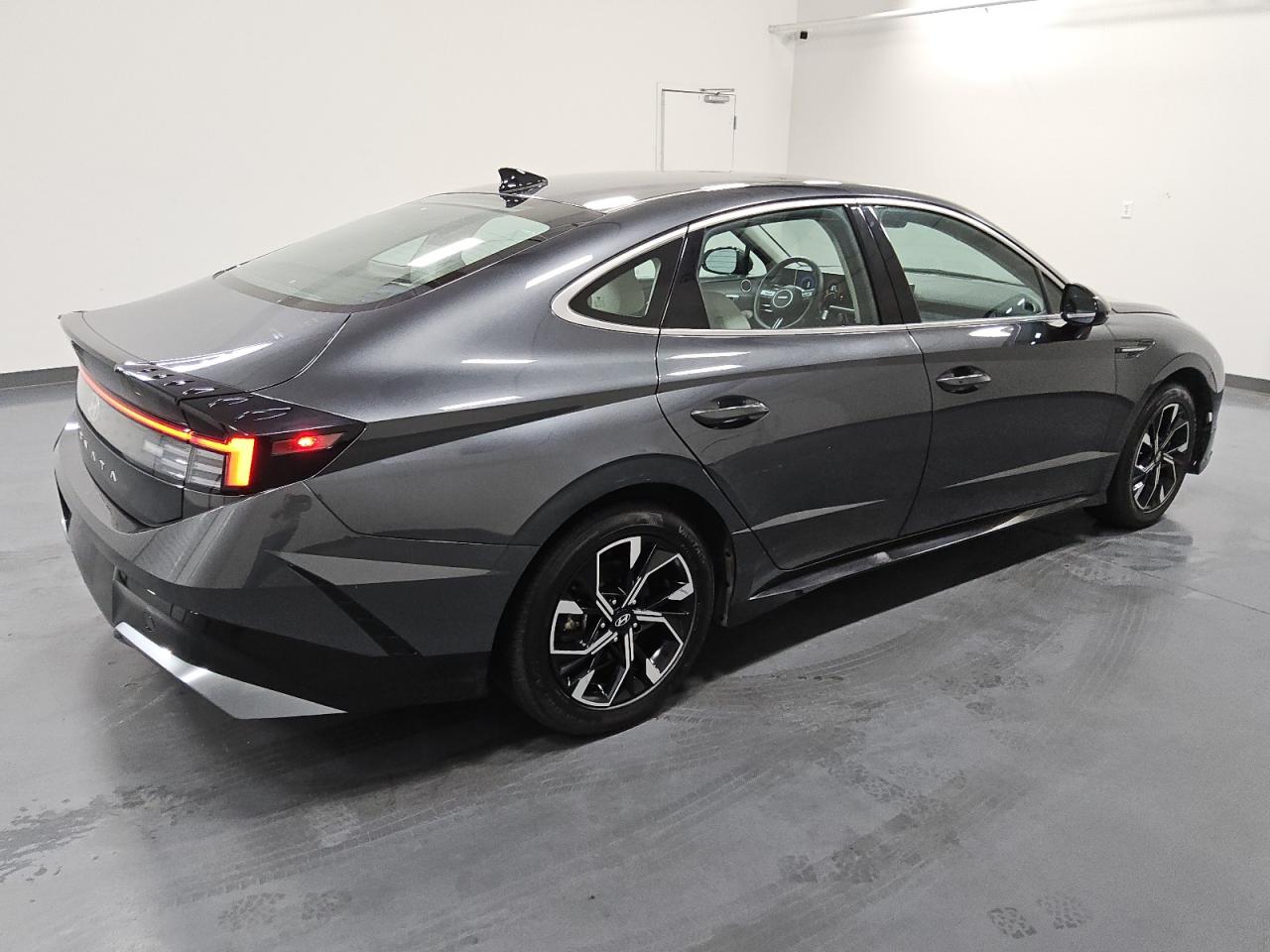 The Sonata offers a refined palette of exterior paints including Phantom Black, Portofino Gray, Serenity White, Shimmering Silver, Calypso Red, and Hampton Gray. N Line-exclusive shades like Carbon Blue and Stormy Sea emphasize its sporty character, while the Hybrid variant introduces eco-themed hues such as Nocturne Green and Digital Teal. The paint finishes are typically high-gloss, though matte and satin options appear in concept editions and regional special trims.