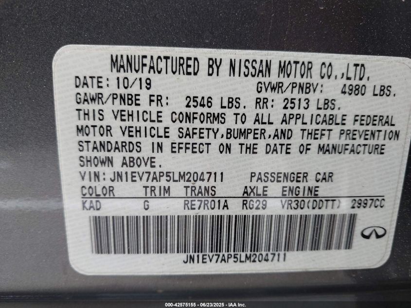 2020 INFINITI Q50 | JN1EV7AP5LM204711