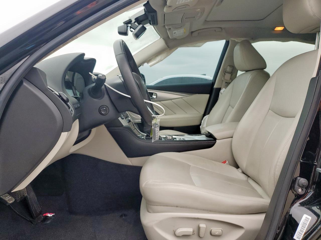 Inside, the Q50 combined traditional Japanese craftsmanship with modern luxury. Leather-appointed seating was available in Graphite, Stone, Java, and Gallery White. Red Sport models introduced Quilted Graphite Leather or semi-aniline Gallery White with red stitching, along with dark chrome or textured aluminum accents.