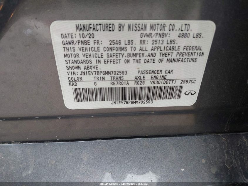 2021 INFINITI Q50 | JN1EV7BP6MM702593