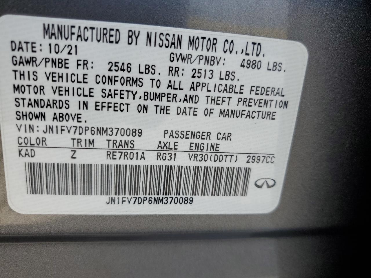 2022 INFINITI Q50 | JN1FV7DP6NM370089