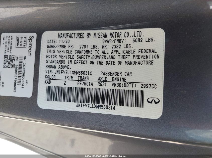 2021 INFINITI Q60 | JN1FV7LLXMM560314