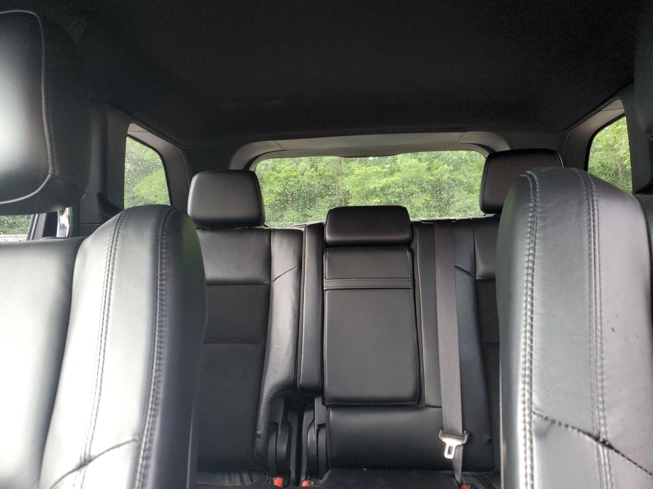 Interior options ranged from cloth (Laredo) to premium Nappa or Laguna leather (Summit, Overland, SRT). Color themes included Morocco Black, Light Frost Beige, and Indigo/Ski Grey. Summit models offered open-pore wood, suede headliners, and stitched dash panels. Rear entertainment, panoramic sunroof, and real wood trim were common in top trims.