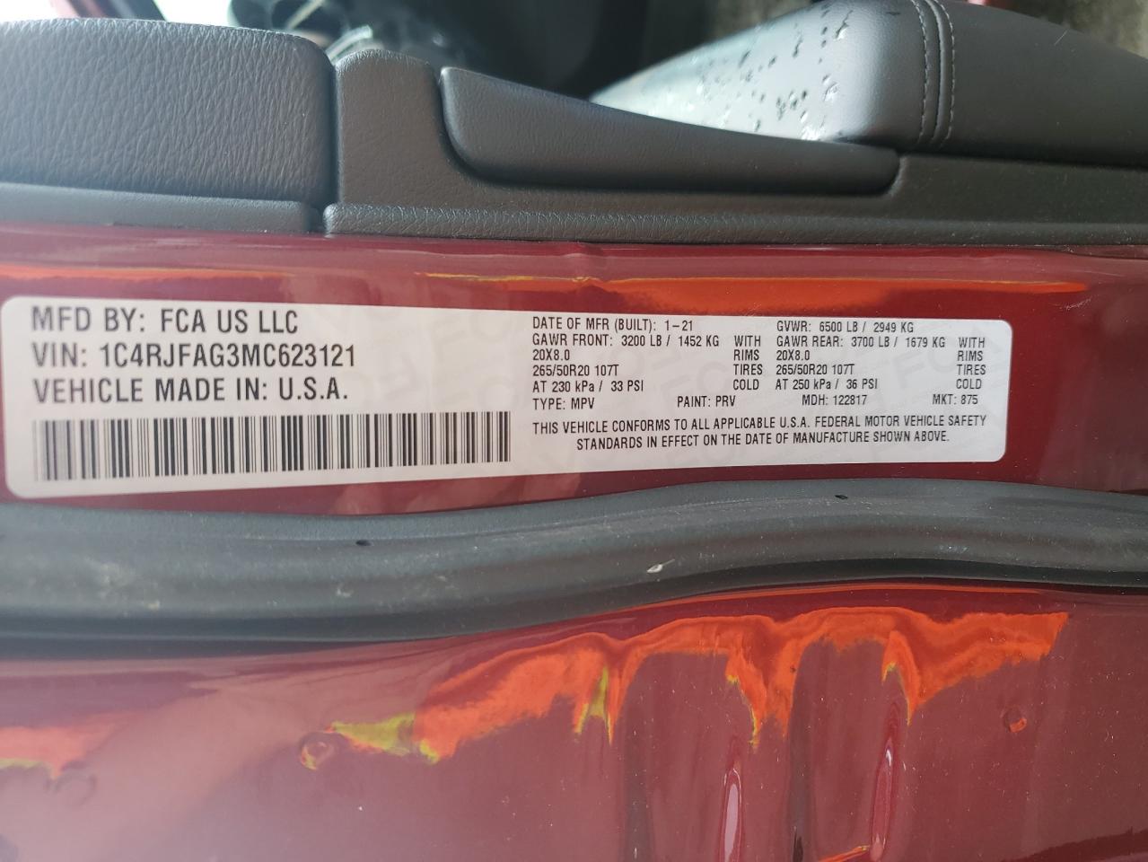 2021 JEEP GRAND CHEROKEE | 1C4RJFAG3MC623121