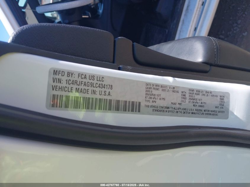 2020 JEEP GRAND CHEROKEE | 1C4RJFAG9LC434178