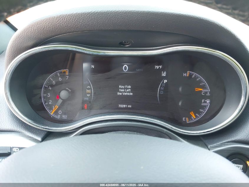 Exterior colors included Bright White, Billet Silver, Granite Crystal, Velvet Red, and Ivory Tri-Coat, with Deep Cherry Red and Rhino Gray added in mid-cycle refreshes. Summit and SRT models received exclusive hues such as Redline Pearl and Diamond Black Crystal. Blacked-out trims and two-tone packages were available in Trailhawk and High Altitude editions.