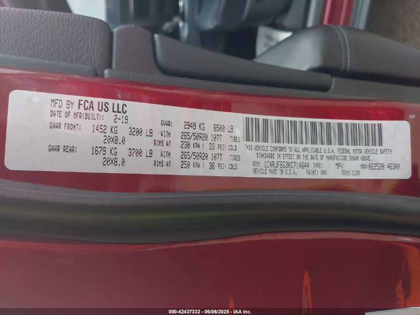 2019 JEEP GRAND CHEROKEE | 1C4RJFBG3KC714644