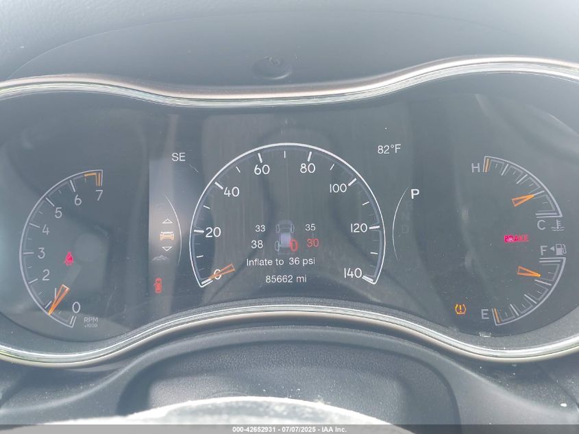 Exterior colors included Bright White, Billet Silver, Granite Crystal, Velvet Red, and Ivory Tri-Coat, with Deep Cherry Red and Rhino Gray added in mid-cycle refreshes. Summit and SRT models received exclusive hues such as Redline Pearl and Diamond Black Crystal. Blacked-out trims and two-tone packages were available in Trailhawk and High Altitude editions.