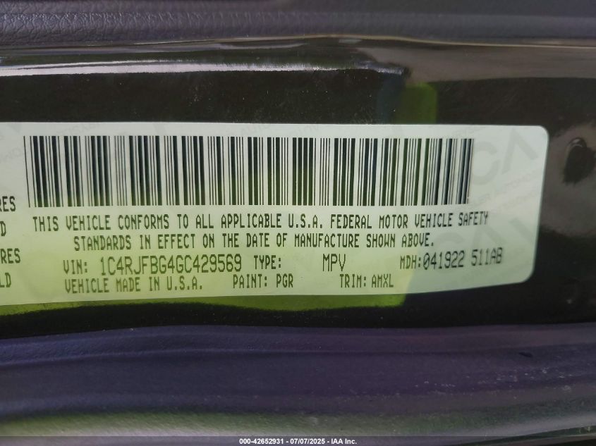 2016 JEEP GRAND CHEROKEE | 1C4RJFBG4GC429569