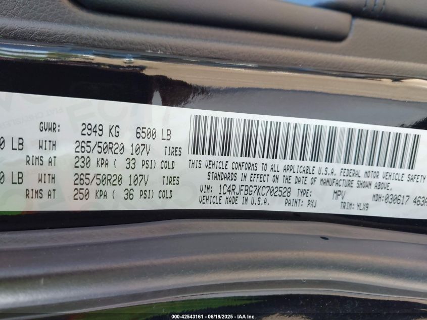 2019 JEEP GRAND CHEROKEE | 1C4RJFBG7KC702528