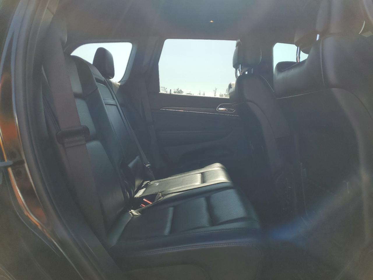 Interior options ranged from cloth (Laredo) to premium Nappa or Laguna leather (Summit, Overland, SRT). Color themes included Morocco Black, Light Frost Beige, and Indigo/Ski Grey. Summit models offered open-pore wood, suede headliners, and stitched dash panels. Rear entertainment, panoramic sunroof, and real wood trim were common in top trims.