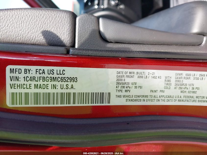 2021 JEEP GRAND CHEROKEE | 1C4RJFBG9MC652993
