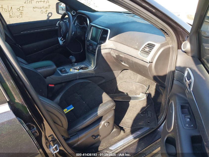 Wheels ranged from 17" silver alloys (Laredo) to 20" polished aluminum (Summit, Overland). SRT models featured staggered 20" lightweight forged wheels with Brembo brakes behind them. Trailhawk models used all-terrain tires and steel skid plates for off-road readiness.