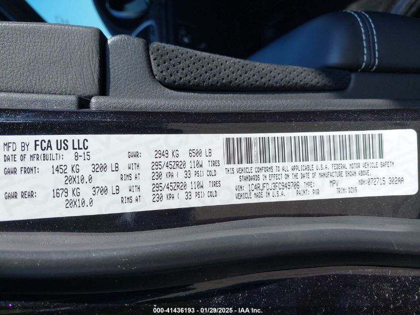 2015 JEEP GRAND CHEROKEE | 1C4RJFDJ3FC949706