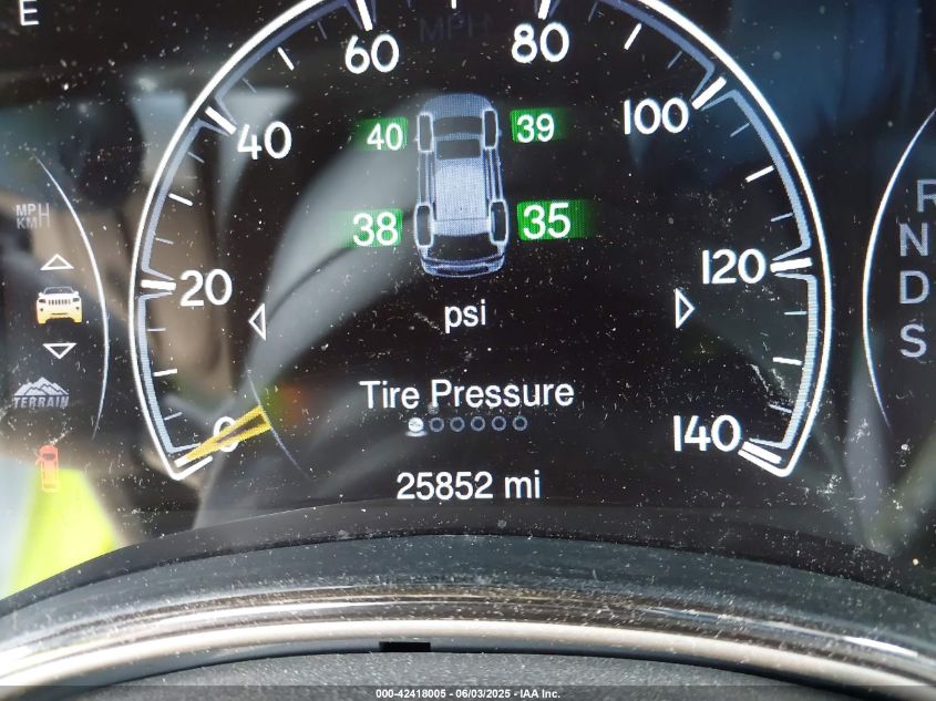 Wheels ranged from 17" silver alloys (Laredo) to 20" polished aluminum (Summit, Overland). SRT models featured staggered 20" lightweight forged wheels with Brembo brakes behind them. Trailhawk models used all-terrain tires and steel skid plates for off-road readiness.