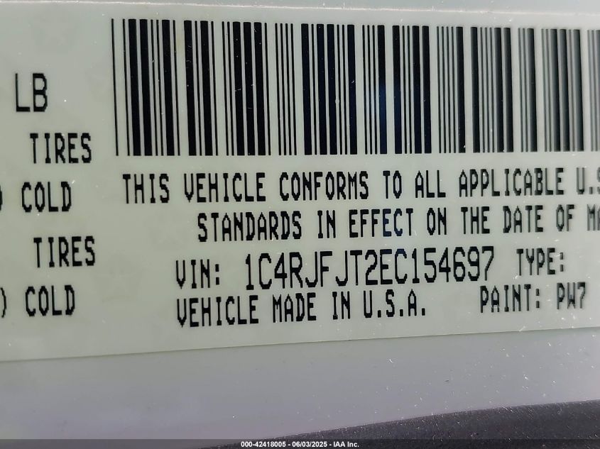 2014 JEEP GRAND CHEROKEE | 1C4RJFJT2EC154697