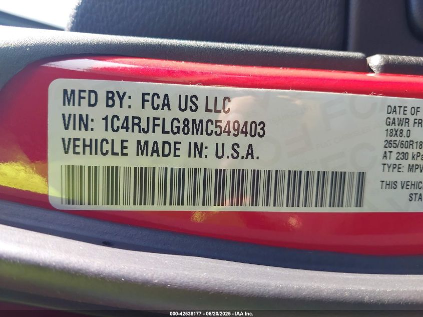 2021 JEEP GRAND CHEROKEE | 1C4RJFLG8MC549403