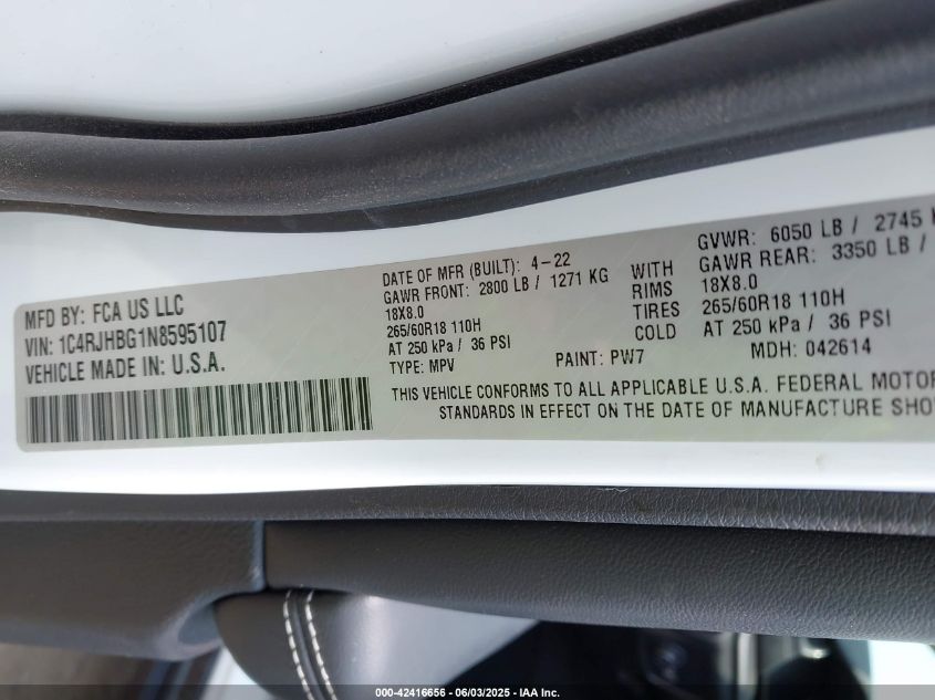 2022 JEEP GRAND CHEROKEE | 1C4RJHBG1N8595107