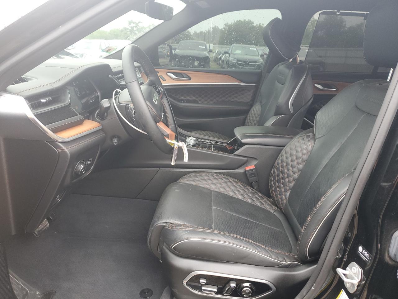 The interior palette is equally sophisticated, designed to bridge utility with luxury through material choice and color harmony. Entry-level trims feature durable Capri leatherette or cloth upholstery in shades like Global Black or Steel Gray, designed for easy maintenance while still maintaining a refined visual tone. Moving up to trims such as Overland and Summit, the cabin is upholstered in full Nappa leather with perforated inserts and accent stitching in contrast tones, including Light Frost, Wicker Beige, and Tupelo Brown. At the top end, the Summit Reserve introduces Palermo leather, quilted surfaces, real open-pore wood trim, and suede headliners, rivaling interiors found in far more expensive European SUVs. The layout is deeply driver-focused, with a layered dashboard design, ambient LED lighting, and advanced ergonomics tailored for both daily use and long-haul travel. The 4xe plug-in hybrid variants offer subtle blue stitching and unique start-up graphics on the infotainment cluster, while Trailhawk models include water-resistant materials, rubberized floor mats, and red recovery-themed interior accents. Across all models, the cabin integrates form and function — blending soft materials with tech-forward design, including up to three digital displays, configurable ambient themes, and an immersive sound environment courtesy of McIntosh or Alpine audio systems.