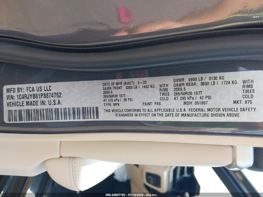 2023 JEEP GRAND CHEROKEE | 1C4RJYB61P8874762