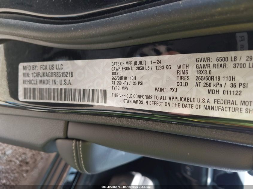 2024 JEEP GRAND CHEROKEE L | 1C4RJKAG0R8515218