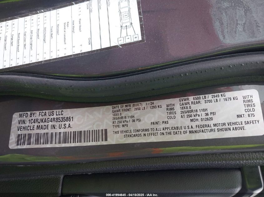 2024 JEEP GRAND CHEROKEE L | 1C4RJKAG4R8535861