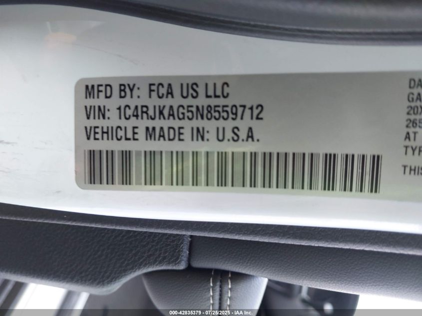 2022 JEEP GRAND CHEROKEE L | 1C4RJKAG5N8559712