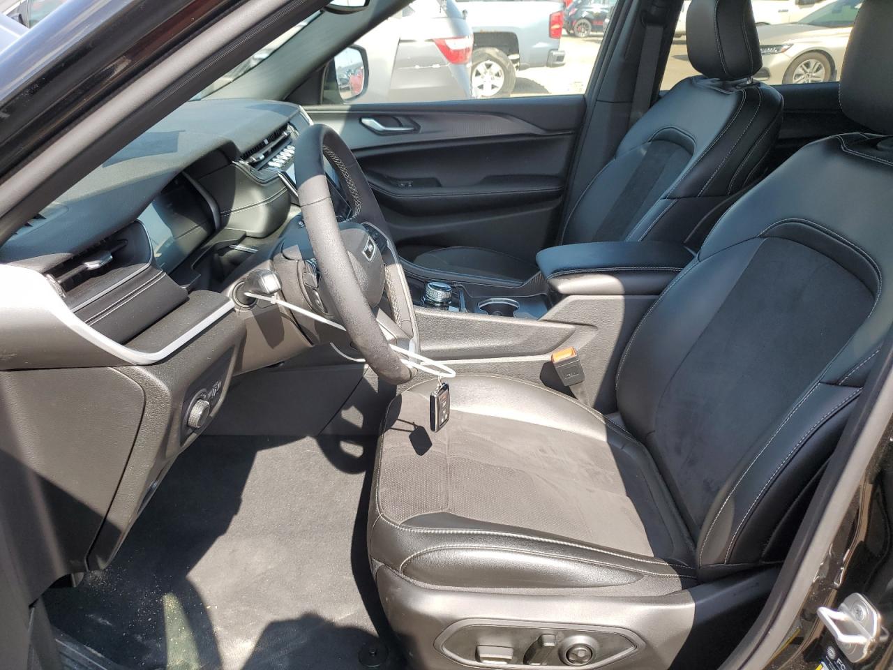The interior palette is equally sophisticated, designed to bridge utility with luxury through material choice and color harmony. Entry-level trims feature durable Capri leatherette or cloth upholstery in shades like Global Black or Steel Gray, designed for easy maintenance while still maintaining a refined visual tone. Moving up to trims such as Overland and Summit, the cabin is upholstered in full Nappa leather with perforated inserts and accent stitching in contrast tones, including Light Frost, Wicker Beige, and Tupelo Brown. At the top end, the Summit Reserve introduces Palermo leather, quilted surfaces, real open-pore wood trim, and suede headliners, rivaling interiors found in far more expensive European SUVs. The layout is deeply driver-focused, with a layered dashboard design, ambient LED lighting, and advanced ergonomics tailored for both daily use and long-haul travel. The 4xe plug-in hybrid variants offer subtle blue stitching and unique start-up graphics on the infotainment cluster, while Trailhawk models include water-resistant materials, rubberized floor mats, and red recovery-themed interior accents. Across all models, the cabin integrates form and function — blending soft materials with tech-forward design, including up to three digital displays, configurable ambient themes, and an immersive sound environment courtesy of McIntosh or Alpine audio systems.
