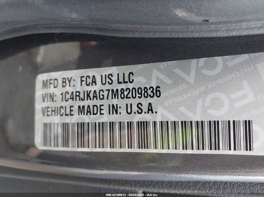 2021 JEEP GRAND CHEROKEE L | 1C4RJKAG7M8209836