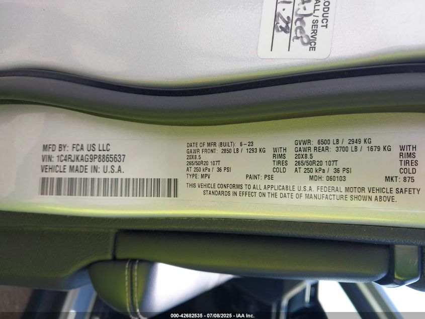 2023 JEEP GRAND CHEROKEE L | 1C4RJKAG9P8865637