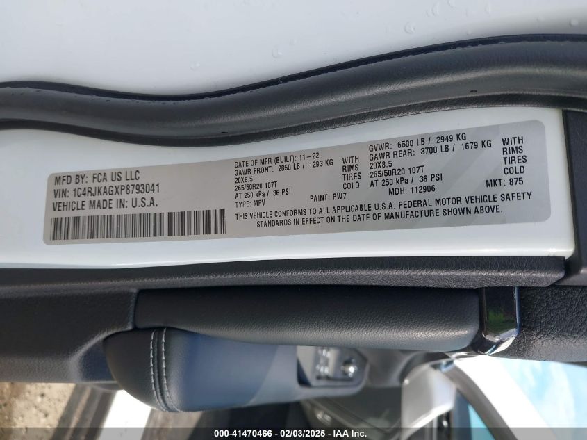 2023 JEEP GRAND CHEROKEE L | 1C4RJKAGXP8793041