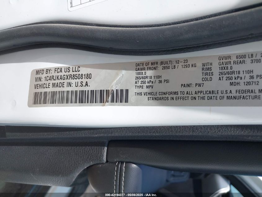 2024 JEEP GRAND CHEROKEE L | 1C4RJKAGXR8508180