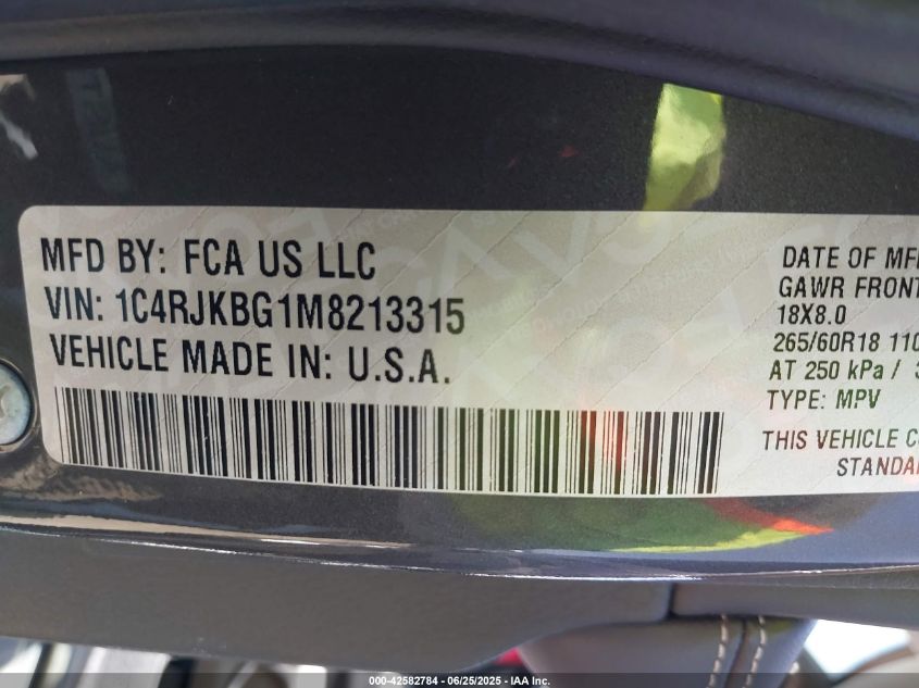 2021 JEEP GRAND CHEROKEE L | 1C4RJKBG1M8213315