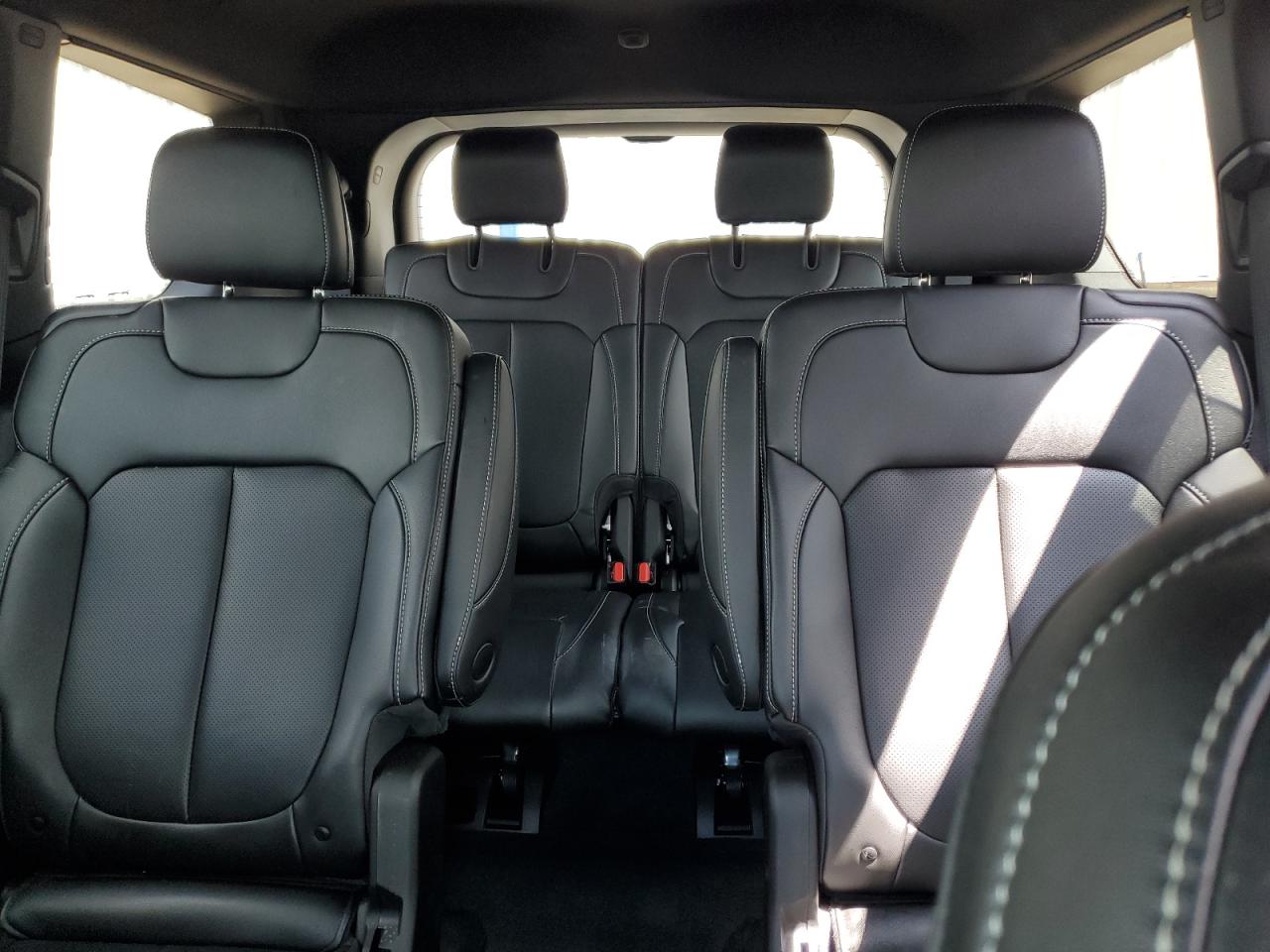 The interior palette is equally sophisticated, designed to bridge utility with luxury through material choice and color harmony. Entry-level trims feature durable Capri leatherette or cloth upholstery in shades like Global Black or Steel Gray, designed for easy maintenance while still maintaining a refined visual tone. Moving up to trims such as Overland and Summit, the cabin is upholstered in full Nappa leather with perforated inserts and accent stitching in contrast tones, including Light Frost, Wicker Beige, and Tupelo Brown. At the top end, the Summit Reserve introduces Palermo leather, quilted surfaces, real open-pore wood trim, and suede headliners, rivaling interiors found in far more expensive European SUVs. The layout is deeply driver-focused, with a layered dashboard design, ambient LED lighting, and advanced ergonomics tailored for both daily use and long-haul travel. The 4xe plug-in hybrid variants offer subtle blue stitching and unique start-up graphics on the infotainment cluster, while Trailhawk models include water-resistant materials, rubberized floor mats, and red recovery-themed interior accents. Across all models, the cabin integrates form and function — blending soft materials with tech-forward design, including up to three digital displays, configurable ambient themes, and an immersive sound environment courtesy of McIntosh or Alpine audio systems.
