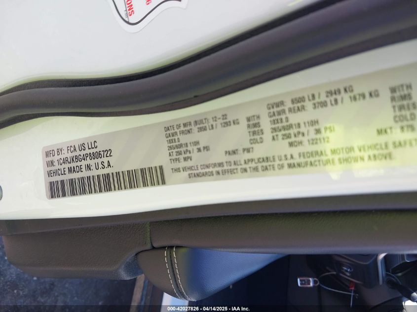 2023 JEEP GRAND CHEROKEE L | 1C4RJKBG4P8806722