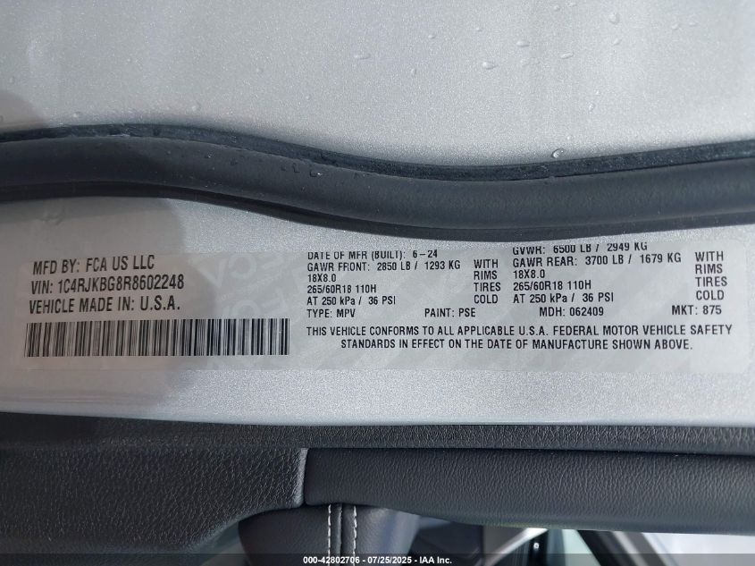 2024 JEEP GRAND CHEROKEE L | 1C4RJKBG8R8602248
