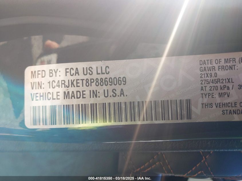 2023 JEEP GRAND CHEROKEE L | 1C4RJKET8P8869069