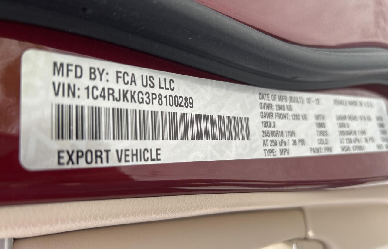 2023 JEEP GRAND CHEROKEE L | 1C4RJKKG3P8100289
