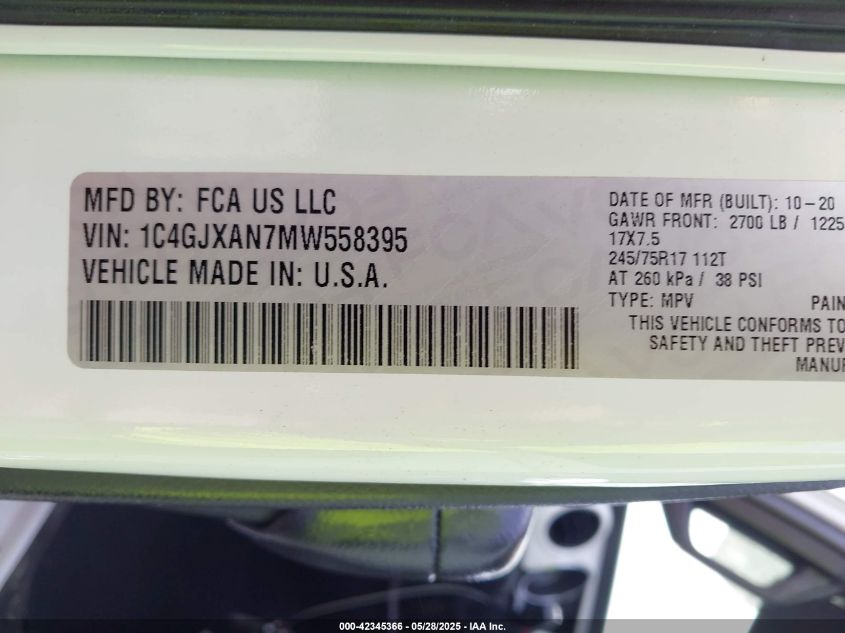 2021 JEEP WRANGLER | 1C4GJXAN7MW558395
