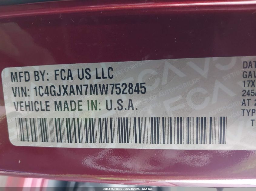 2021 JEEP WRANGLER | 1C4GJXAN7MW752845