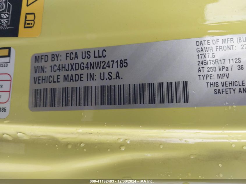 2022 JEEP WRANGLER | 1C4HJXDG4NW247185