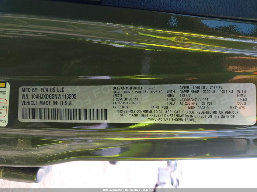 2022 JEEP WRANGLER | 1C4HJXDG5NW113205