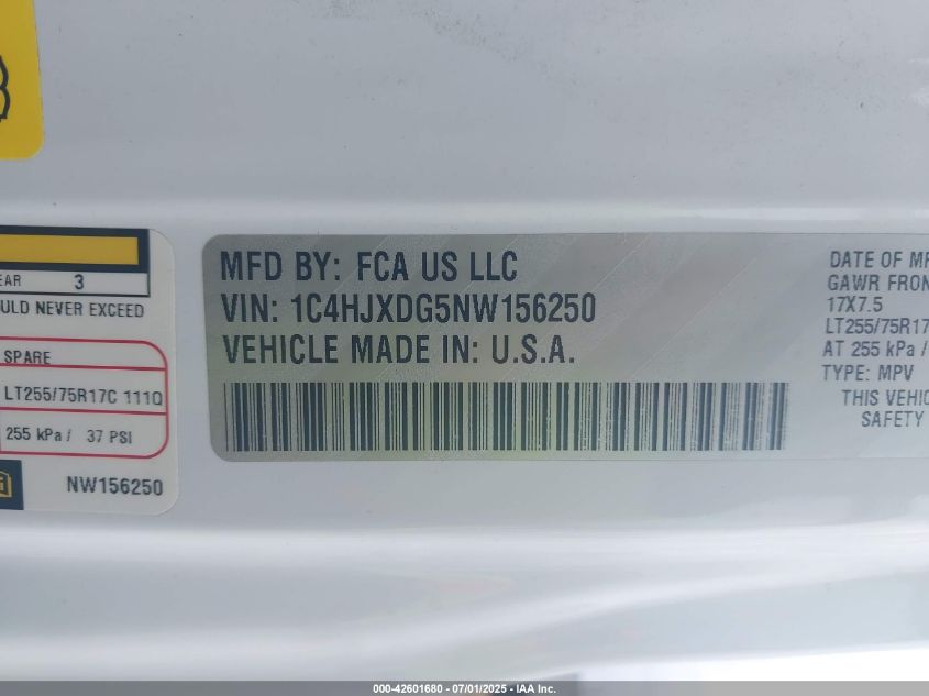 2022 JEEP WRANGLER | 1C4HJXDG5NW156250