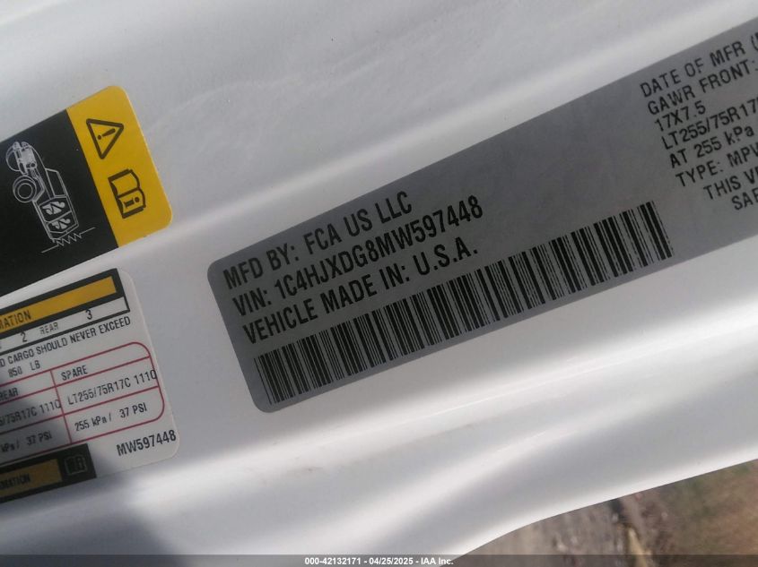 2021 JEEP WRANGLER | 1C4HJXDG8MW597448